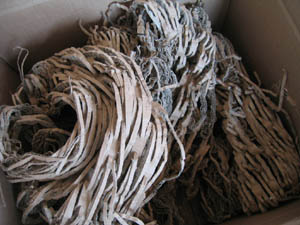 Og jeg elsker, når der kommer uventede gaver ind ad døren. Som dette fyld i en pakke. Det er sådan set bare fyld … affald … hvis man ser sådan på det. Men det er også noget andet … et eller andet … noget der kan blive til noget, gemmer på noget … Jeg ved ikke lige hvad. Jeg kan bare mærke, at det taler til mig, frister mig.