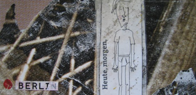 En af mine yndlingsbeskæftigelser, når jeg er i Berlin, er at lave collager – af plakataffald, postkort, brochurer og hvad jeg ellers kan finde rundt omkring. Jeg nyder at omforme dagens fund til små billeder. I år er nogle af dem blevet brugt som postkort – en hjemmelavet hilsen fra Berlin. Her et lille udvalg.