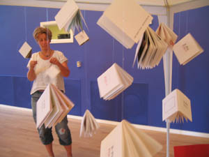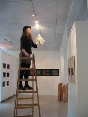 Jeg synes altid, må jeg indrømme, at det er lidt nervepirrende kaotisk, når en udstilling skal sættes op – især når der er flere udstillere indblandet. Så kommer man slæbende med hver sin stak værker, spreder dem ud på gulvet, tager den samlede indsats i øjesyn, tager rummet i øjesyn … og begynder så lige så stille at fordele det hele i rummet. Hvad skal hvorhen … og hvorfor … og måske skulle det i grunden hellere stå her … eller her … hvis nu vi så flytter det her derhen, så det står i kontakt med det andet værk her … ville det så ikke virke bedre … For det er jo det, det handler om: at få de forskellige værker til at snakke sammen, så de fremhæver hinanden og udstillingen ender i helhed.