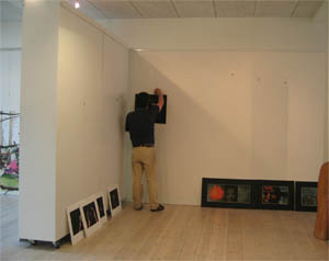 Opsætning af udstilling vel overstået. Hyggelig dag. Godt samarbejde. Nedenfor et par billeder fra dagens arbejde. Ovenfor et af billederne i min spritnye … ja, hvad skal jeg kalde det … 3D fotocollage serie med titlen Come on closer.