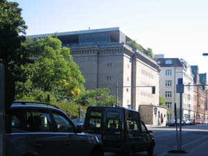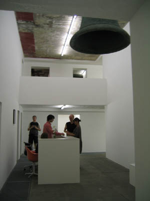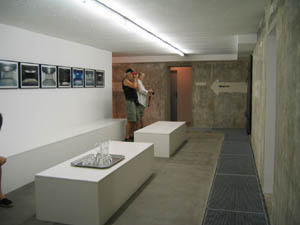 Hvis man har lyst til at se samtidskunst, så er her et forrygende flot sted at gå på oplevelse. Og igen er der tale om et udstillingssted, som i sig selv er nærmest et kunstværk. I ombygningen (reducering af rum fra 120 til 80 samt bygningen af en penthouselejlighed (samlerens!)) er en del af det gamle bunkerslook bevaret, og der er en skøn kontrast mellem det helt nye og istandsatte og de historieosende vægge og trappeopgange. Vi måtte ikke fotografere under omvisningen, så her blot et par billeder fra receptionen og et billede af bygningen set udefra. I øvrigt så er bygningen helt neutral udvendig, bare en firkantet klods med identiske døre til alle fire sider – der er ingen angivelse af, at her ligger et museum. Den rigtige indgangsdør finder man ved hjælp af et lille ydmygt skilt ved siden af en ringklokke, som man ringer på – hvorefter man bliver lukket ind i de hellige (labyrintiske!) haller!