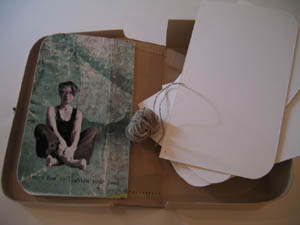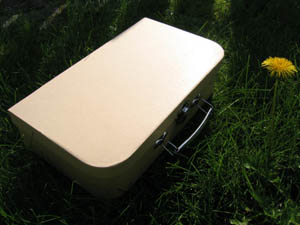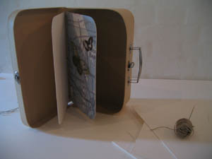 På vores dejlige tur til Malmö/København blev Gulla, Hanne og jeg enige om at sætte lidt gang i tingene med et stafet-projekt, simpelthen lave en bog sammen til konkurrencen på stafet-maner. Og i sidste uge fik jeg så et oplæg fra Gulla, et startskud: En lille papkuffert.