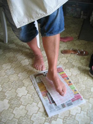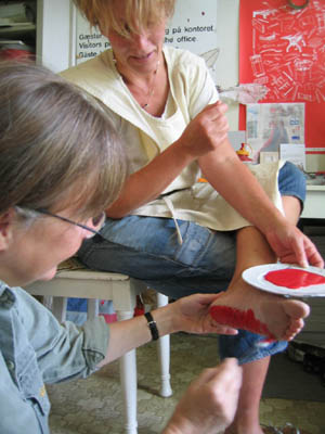 Ja, vi mødtes så i går hos Hanne for at gøre kuffertbogen færdig – Gulla rejste helt fra København for at vi sammen kunne lægge sidste hånd på værket … som i nogle tilfælde blev til en fod!