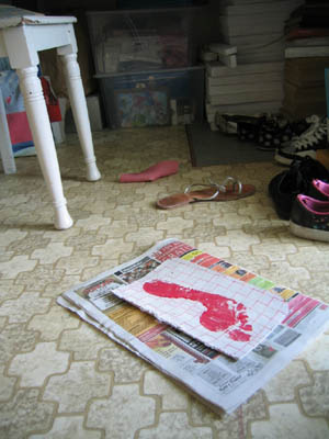 TEXT … er emnet for 5th International Artist’s Books Triennial Vilnius 2009. Og der er deadline den 15. november 2008 for indsendelse af værker til den censurerede udstilling. Så jeg er i gang. (Endelig langt om længe! Kreativiten har været noget sendrægtig her efter sommerferien. ØV!). Arbejder med en “bogrigtig” og engelsk version af “Store ord” (vist på udstillingen Fra Pixi til XL denne sommer). Derudover så har emnet TEXT nu voldt mig lidt modstand. Underligt nok … eftersom jeg vel må siges at være så fuld af ord. Der er bare ikke rigtig dukket en indfaldsvinkel op. Men lidt lag på lag-leg i dag har måske åbnet en dør …