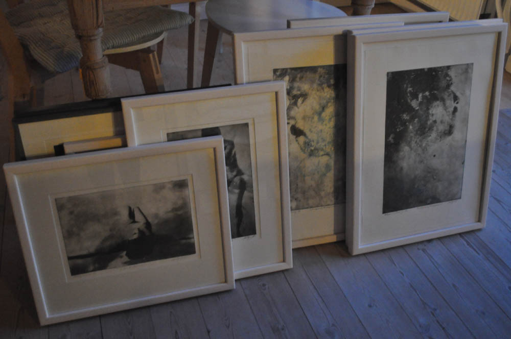 Så er billederne linet op – klar til morgendagens opsætning af Jydsk Grafisk Værksteds udstilling på Sløjfen i Hadsten. Heriblandt en lille serie Decomposed/Recomposed! Det bliver en lynophængning i morgen … men det bliver forhåbentlig vellykket alligevel! Der er fernisering kl. 16.00. Kig endelig forbi!