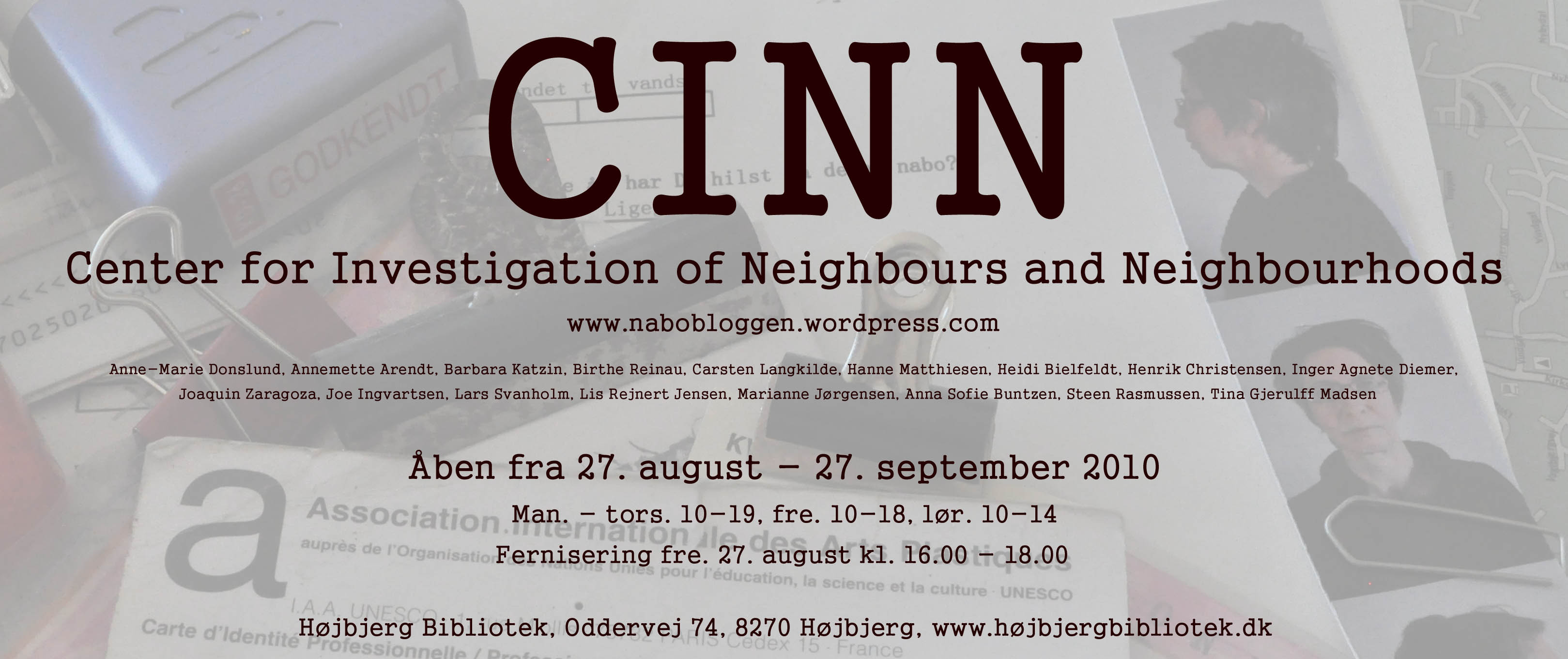 I morgen slår CINN – Center for Investigation of Neighbours and Neighbourhoods dørene op for kontoret og for en række undersøgelser af begrebet NABO. 16 researchere (kunstnere) giver hver deres vinkel på emnet.
