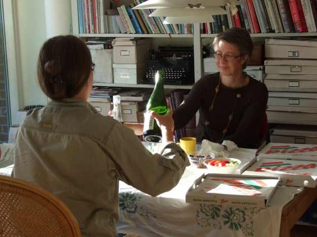 Det har – igen igen – været skønt at mødes. Masser af livsberigende snak, grin og inspirerende samarbejde. Og champagne til pizzaen!