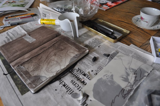 ARTROVERT har sluppet det indre bæst løs og kastet sig ud i en artist’s book, som forhåbentlig ender på udstilling i Lecce, Italien (vi er blevet inviteret til at sende værk). Det overordnede tema for udstillingen er “Naturalia e animalia”, og vi har valgt at dykke ned i menneskets knap så kønne sider, de mørke sider. Alt det man måske helst ville glemme gemmer sig derinde i dybet. Det knurrende, stønnede, hvæsende, frådende, snerrende. Alle instinkterne. Følelserne. Bæstet. Vreden, mindreværdet, ensomheden, jalousien, tristheden. The Sleeping Beast. Som indimellem vågner og bider fra sig, vælter ud af knaphuller og indre sprækker. Bæstet …. Betragtet og skildret …. med et glimt i øjet!
