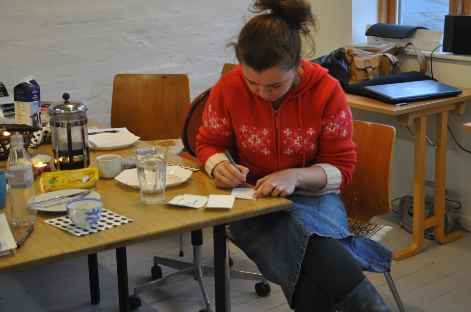 Suzi i fuld gang med at tegne ….
