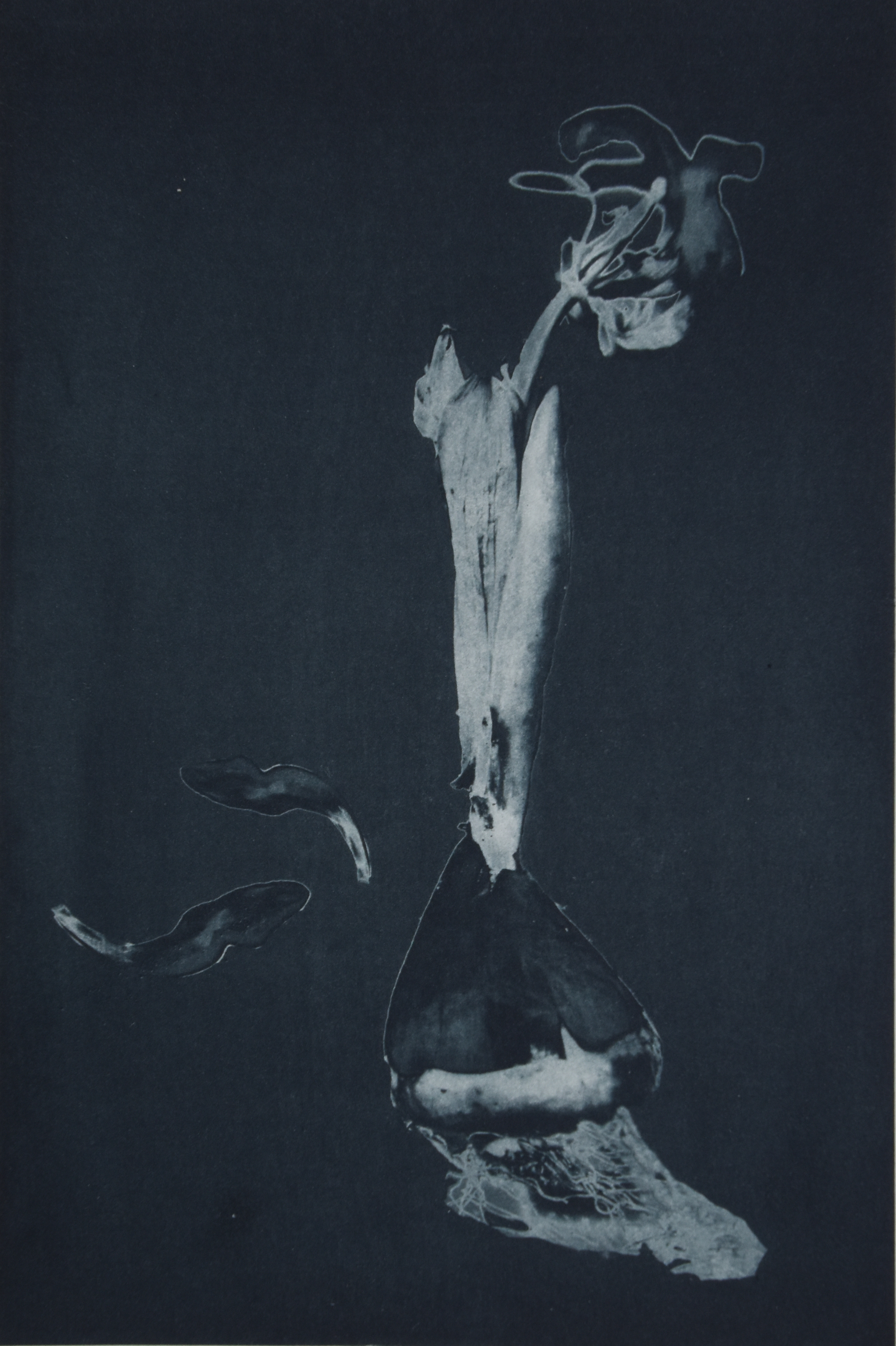 For mit eget vedkommende er det blandt andet blevet til grafiske tryk af visne juletulipaner. Tulipaner har den smukkeste måde at forgå på. De åbner sig, strækker sig, falmer, tørrer, krøller sig sammen til de ender i en anden form for skønhed. Lige der har jeg foreviget dem, givet dem nyt liv som grafisk tryk.