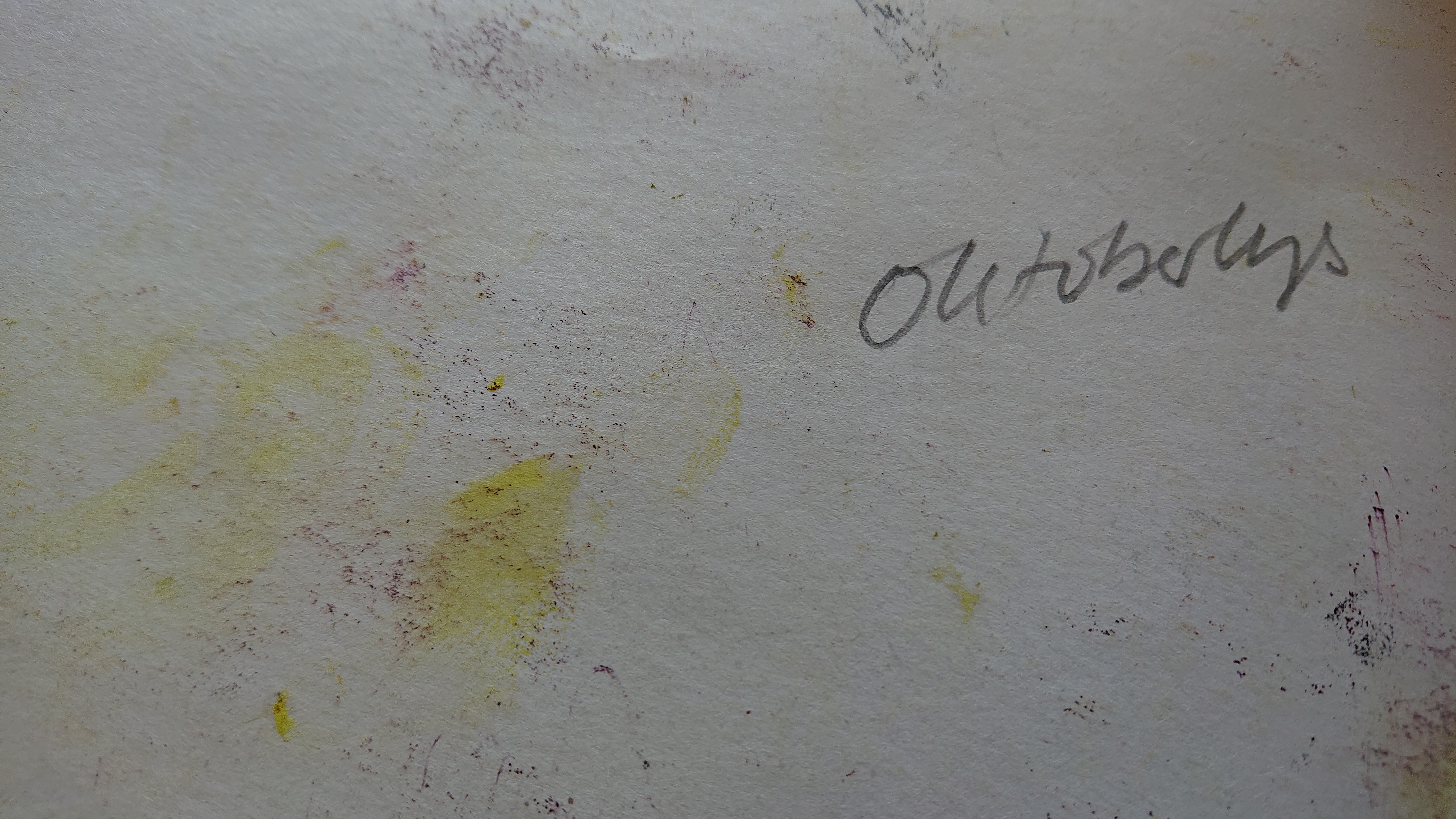 Solen skinner gult over oktoberlandskabet. Det er grønt, det er okker, det er sienna. Og det er blåt og det er gråt og efterårsbrunt og en smule glødende rødt, det er strejf af gul og meget andet. På værkstedet samler det sig i forenklet blommefarvet og gult (sort 55991, cadmium rød og citron gul). Jeg elsker det sorte sorte sorte kontrastfulde, kraftfulde grafik. Men jeg trænger også til at finde nye farver, nye veje.
