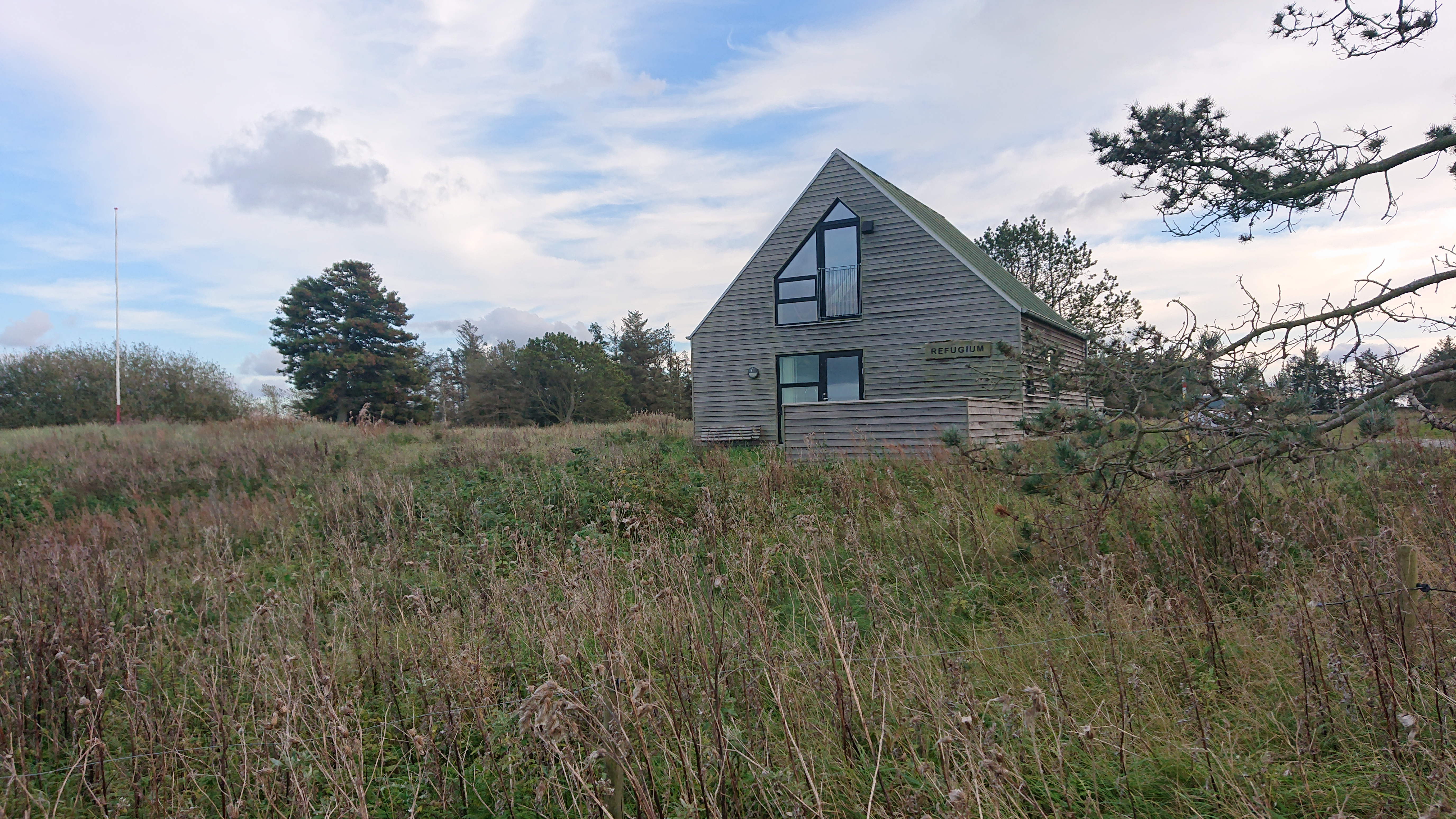 Langt ude vest på. Langt ude af en grusvej. Langt ude mellem indre klitter. Mellem græssende heste og højt til himlen. Ligger Slettingen refugium (og naturskole). Genialt at nogen (Hjørring kommune) har tænkt og bygget sådan et sted. Som man kan søge om at leje for en kortere eller længere periode. Vi har 14 dage. (Og tak til Rigmor for at gøre opmærksom på stedet.)
