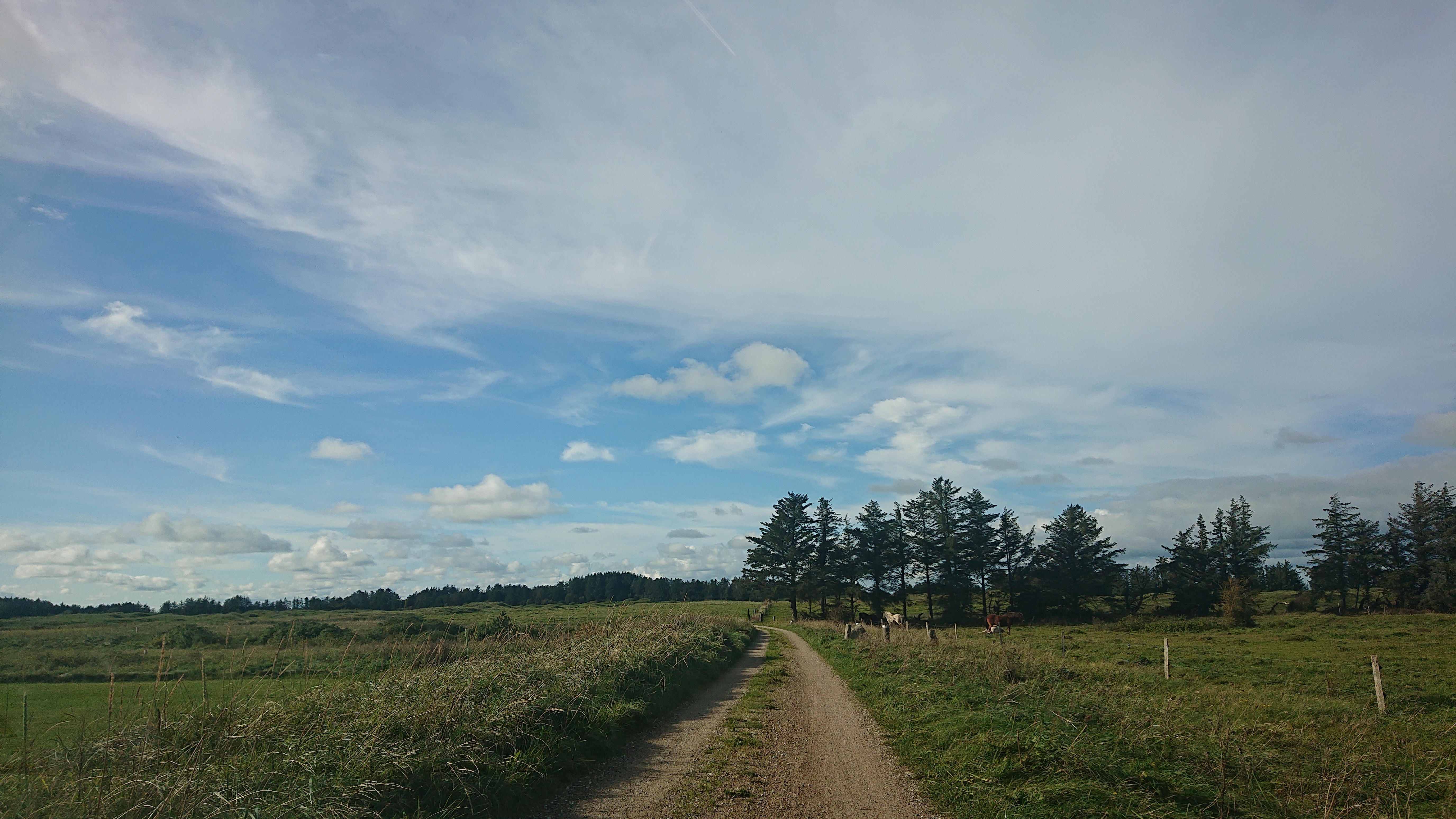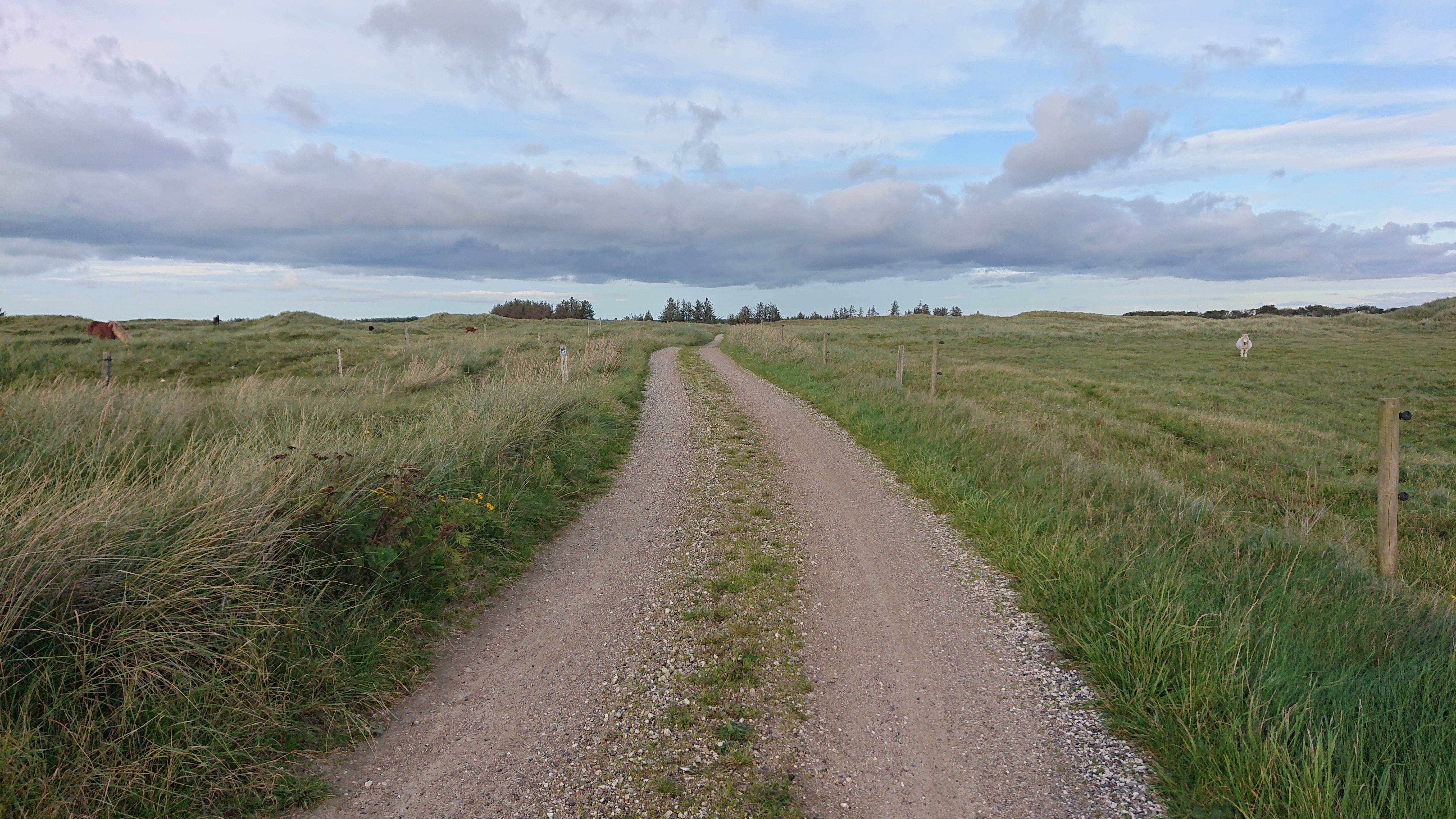 Jeg har fotograferet et væld af veje. Her, på Færøerne, på Island, altid når vi rejser. Og her vejen til Slettingen. Med smukke skyer der hænger lige det rigtige sted.