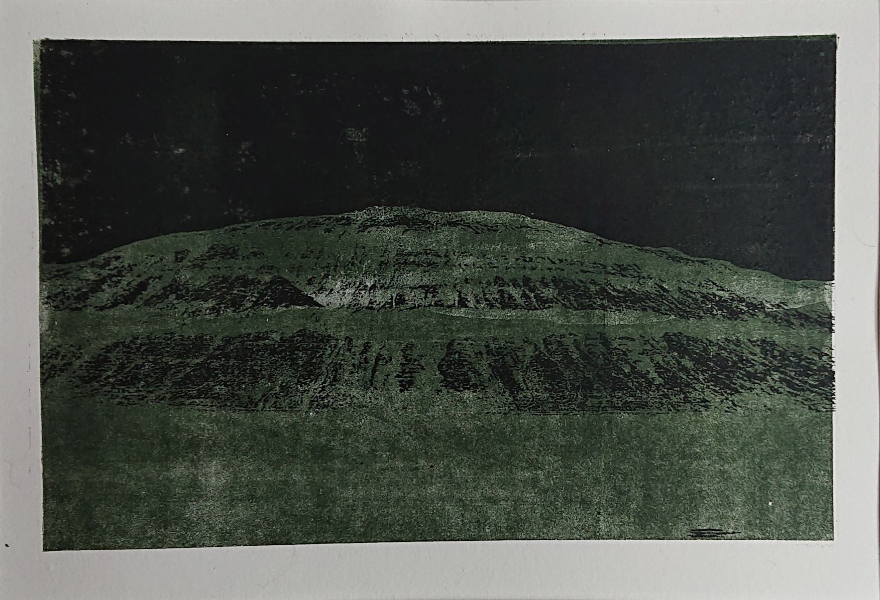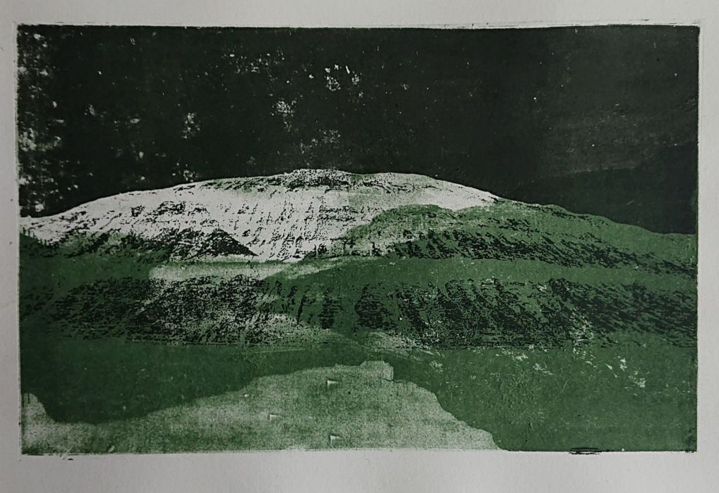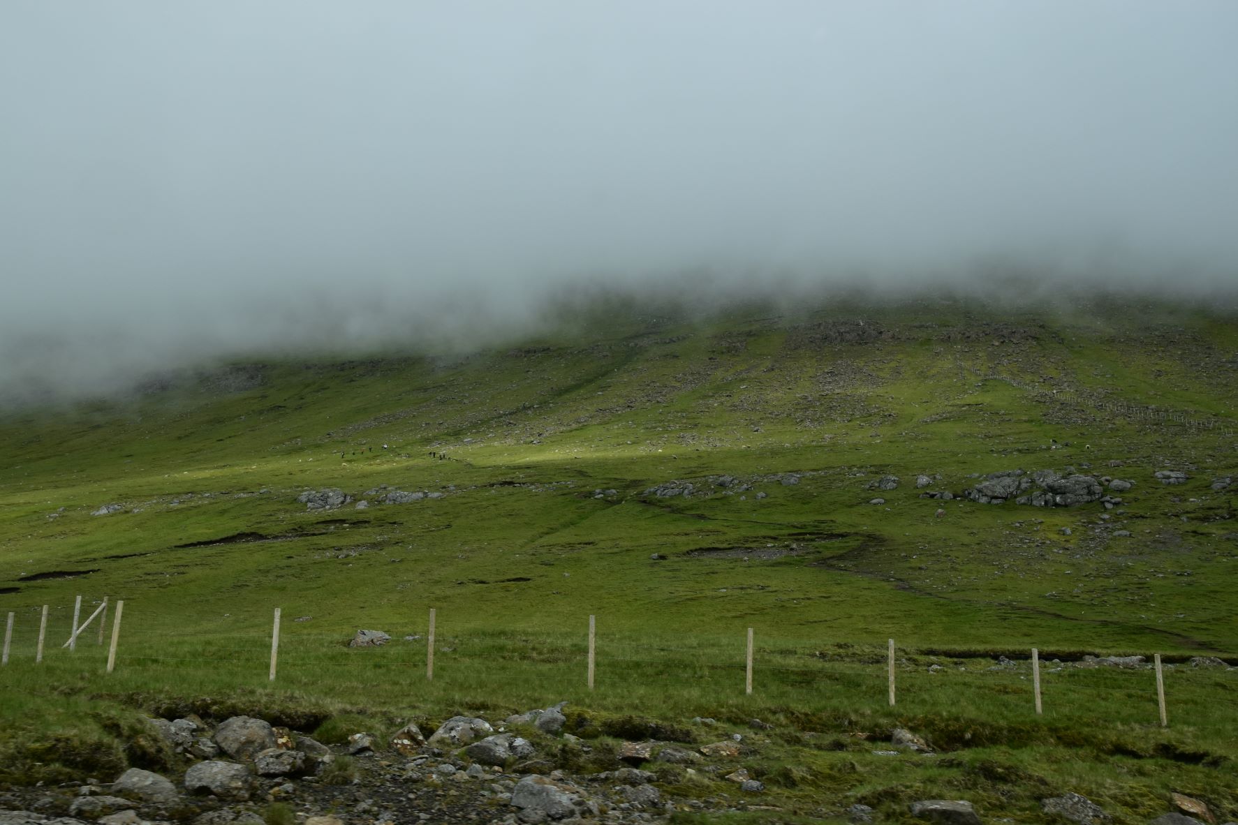 Jeg har et solidt lager af grønne landskaber. Hver gang vi kører på inspirationstur, så er kameraet i gang. Søren kører, jeg fotograferer – når vi ikke holder stille for at fotografere. Jeg har fotograferet de samme fjelde mange gange. Der er nogle former, jeg falder for. Men billederne er alligevel aldrig ens. Lyset kan være forskelligt, solen kan få græsset til at lyse skriggrønt, skyerne kan sende flimrende skygger henover landskabet, det kan være lidt diset eller landskabet kan være forsvundet i tåge.