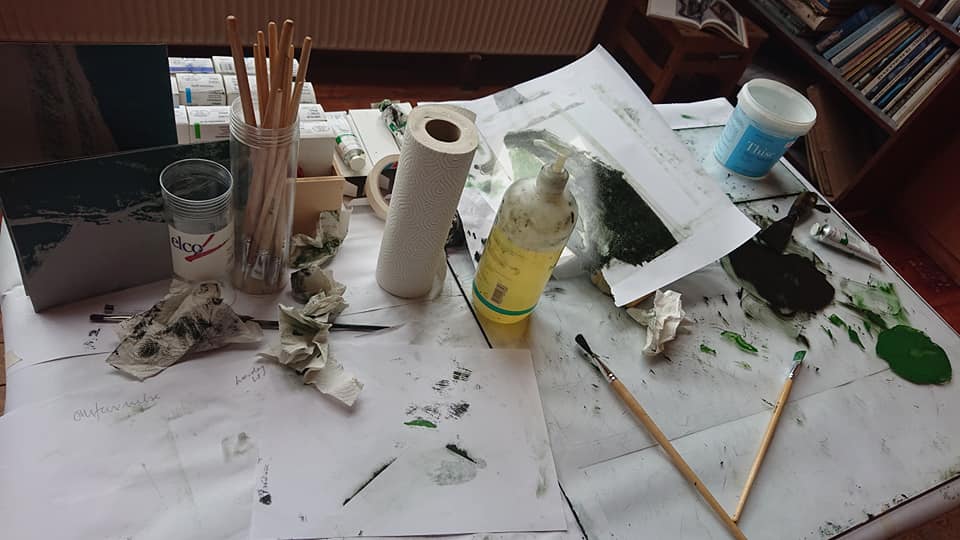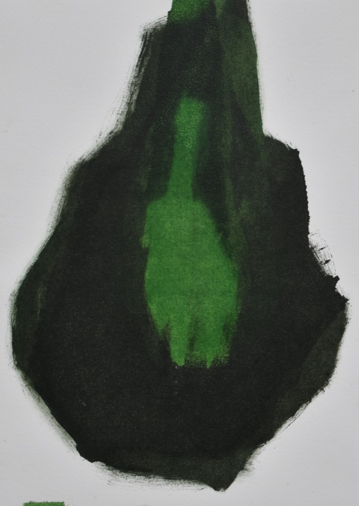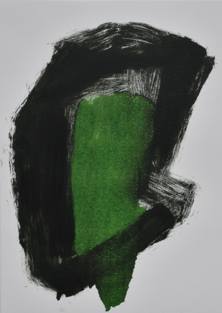 Jeg arbejder videre på den nye serie. Med det mørketunge og det lysende grønne. Arbejdstitlen “Omfavnelsen”. Indtil videre hedder den det … og handler om det.