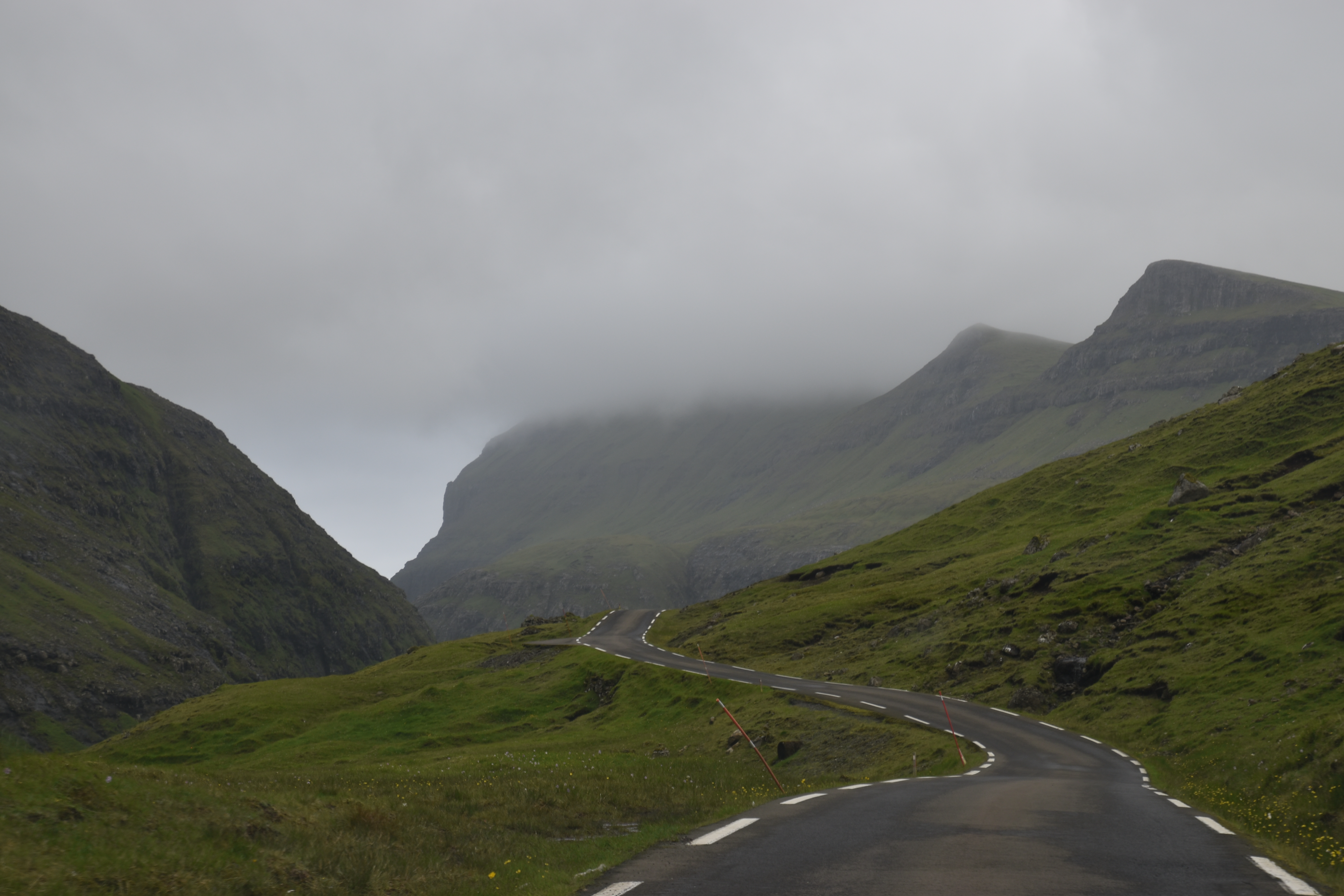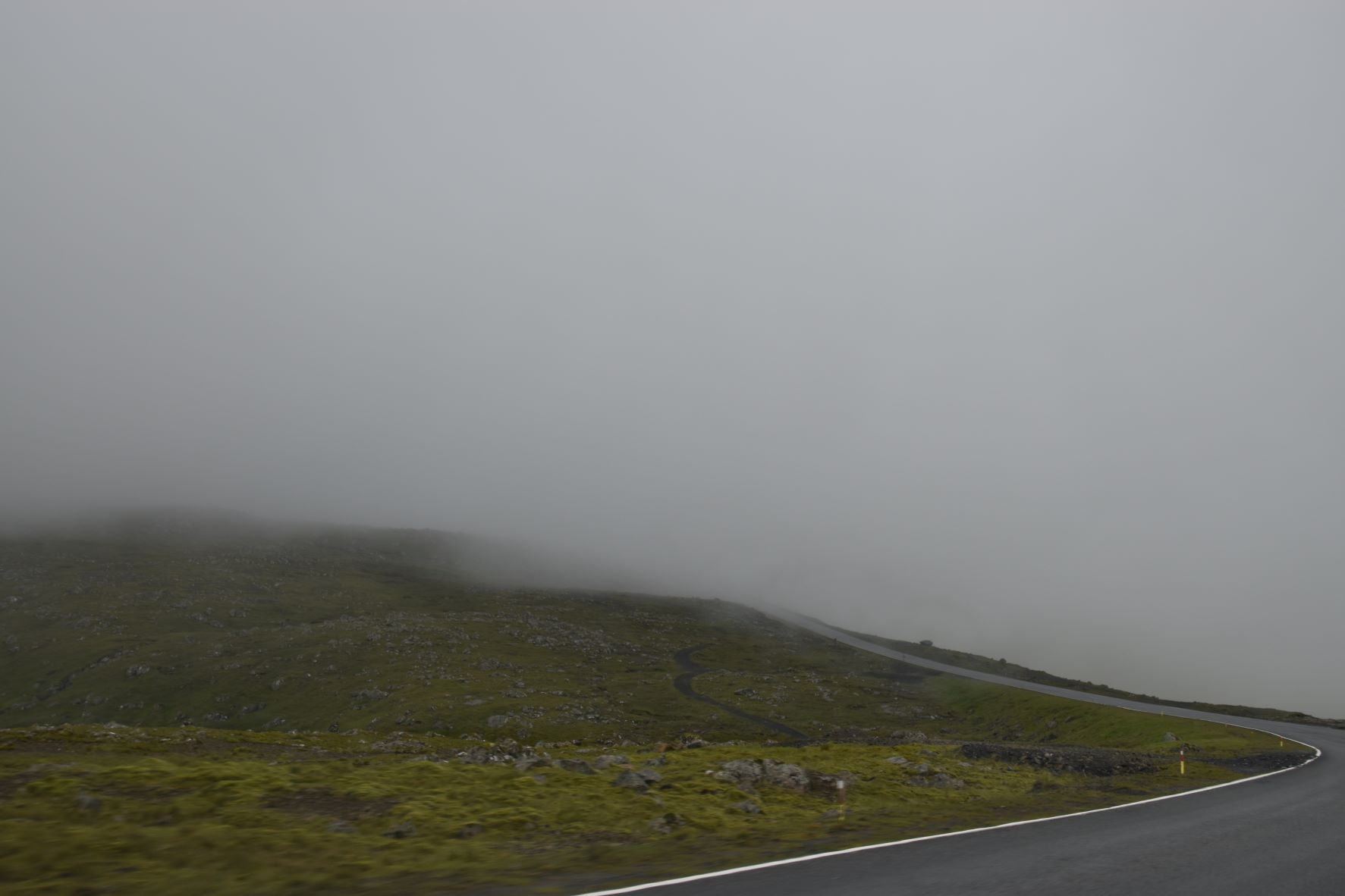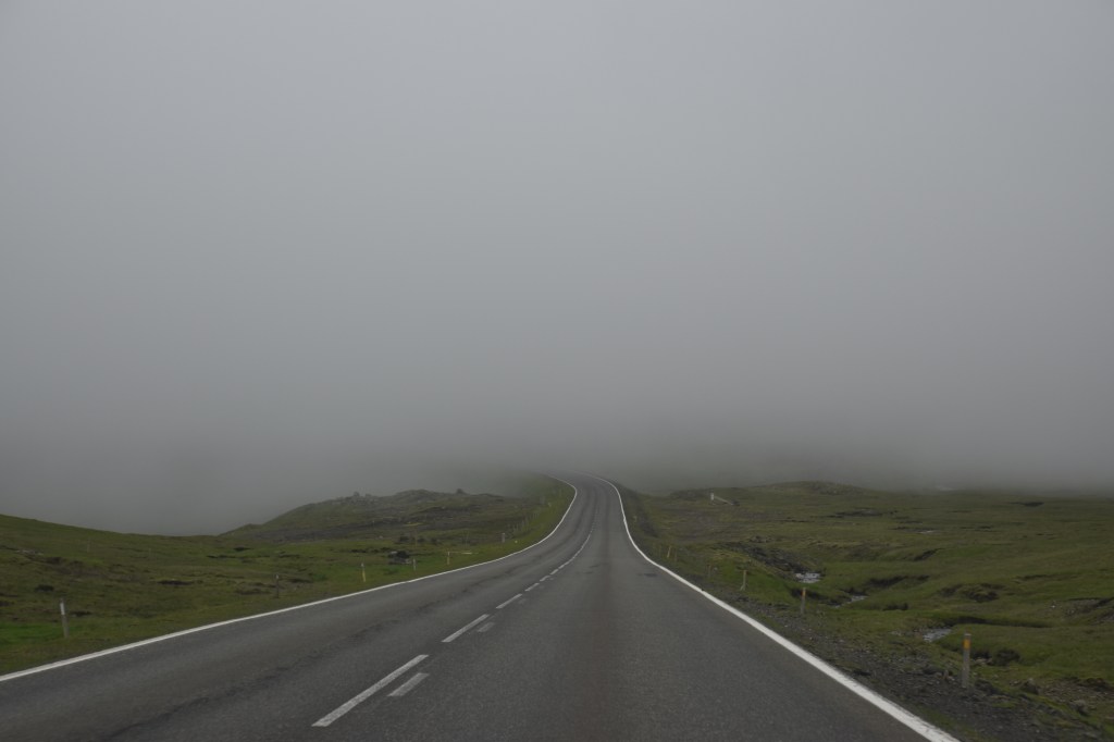 Det er fra udsigten her, vi vurderer om det er for tåget eller regnfuldt til en inspirationstur, eller om det er værkstedsarbejdsdag. Og med lidt hjælp fra YR. Selvom det med tågen/regnen kan snyde, for den kan være væk, når man er kørt gennem en tunnel og ud på den anden side af fjeldet. Så det er sjældent man skal blive hjemme, fordi det er tåget i Tórshavn. Vi har kun en enkelt gang (på opholdet i 2019) oplevet, at det var så tåget, at vi måtte vende om og køre hjem igen.
