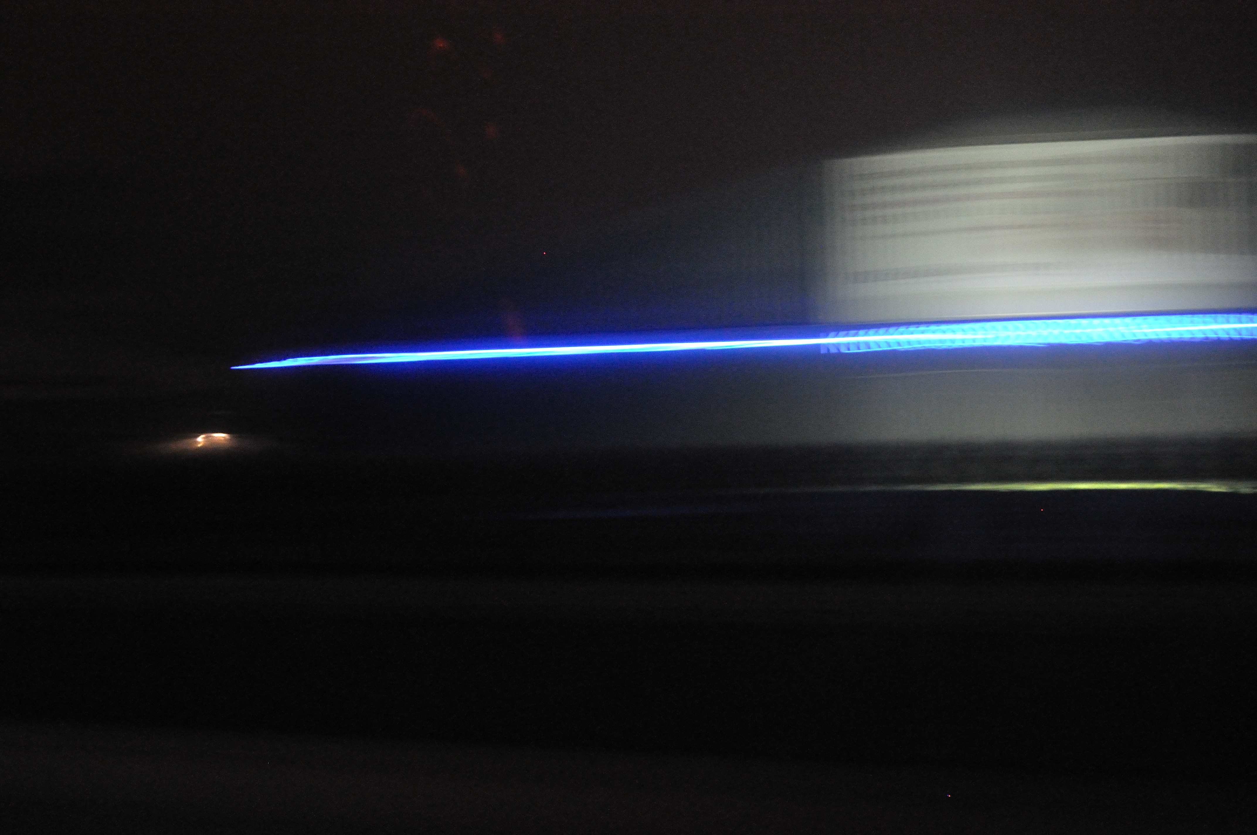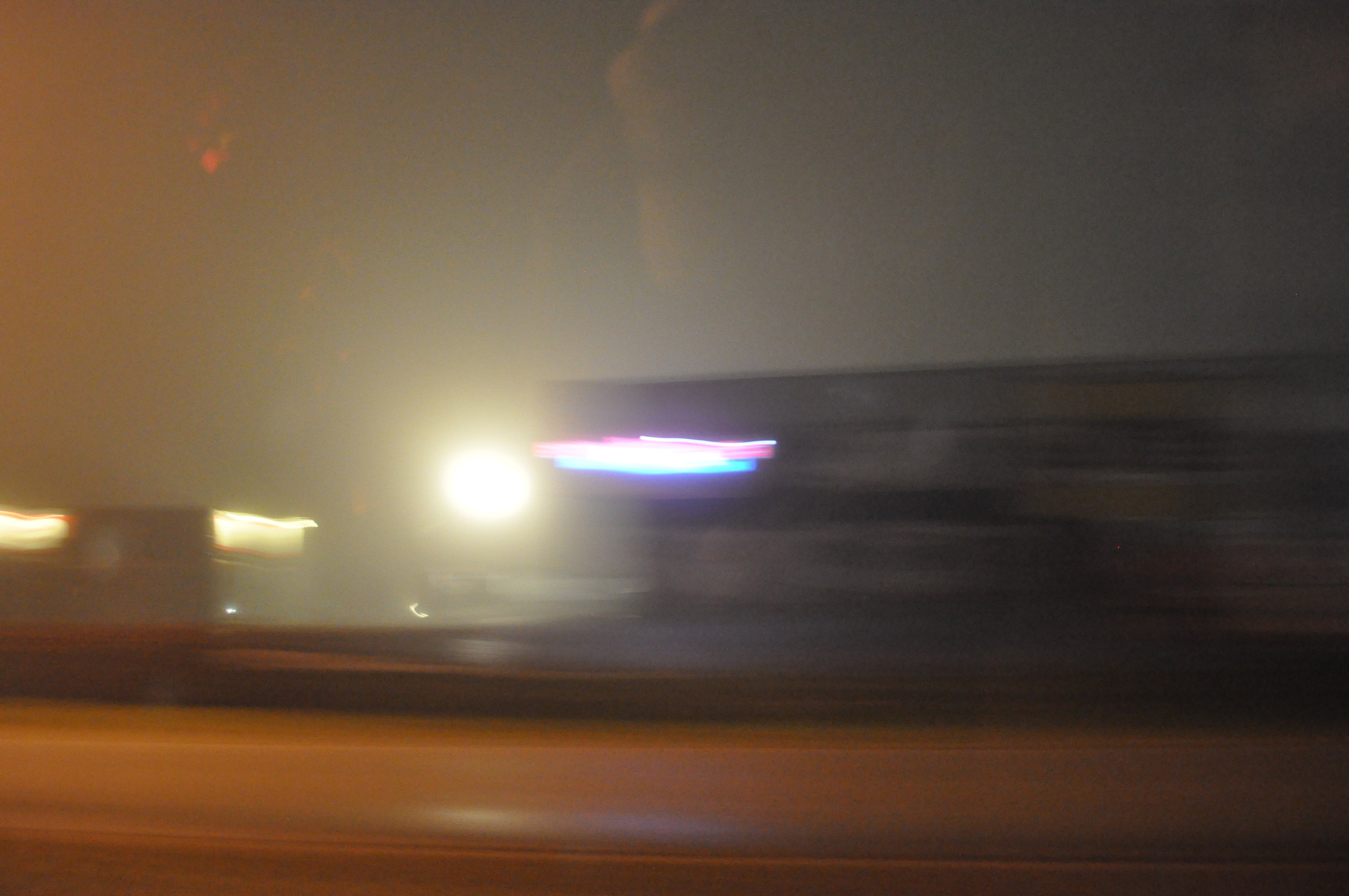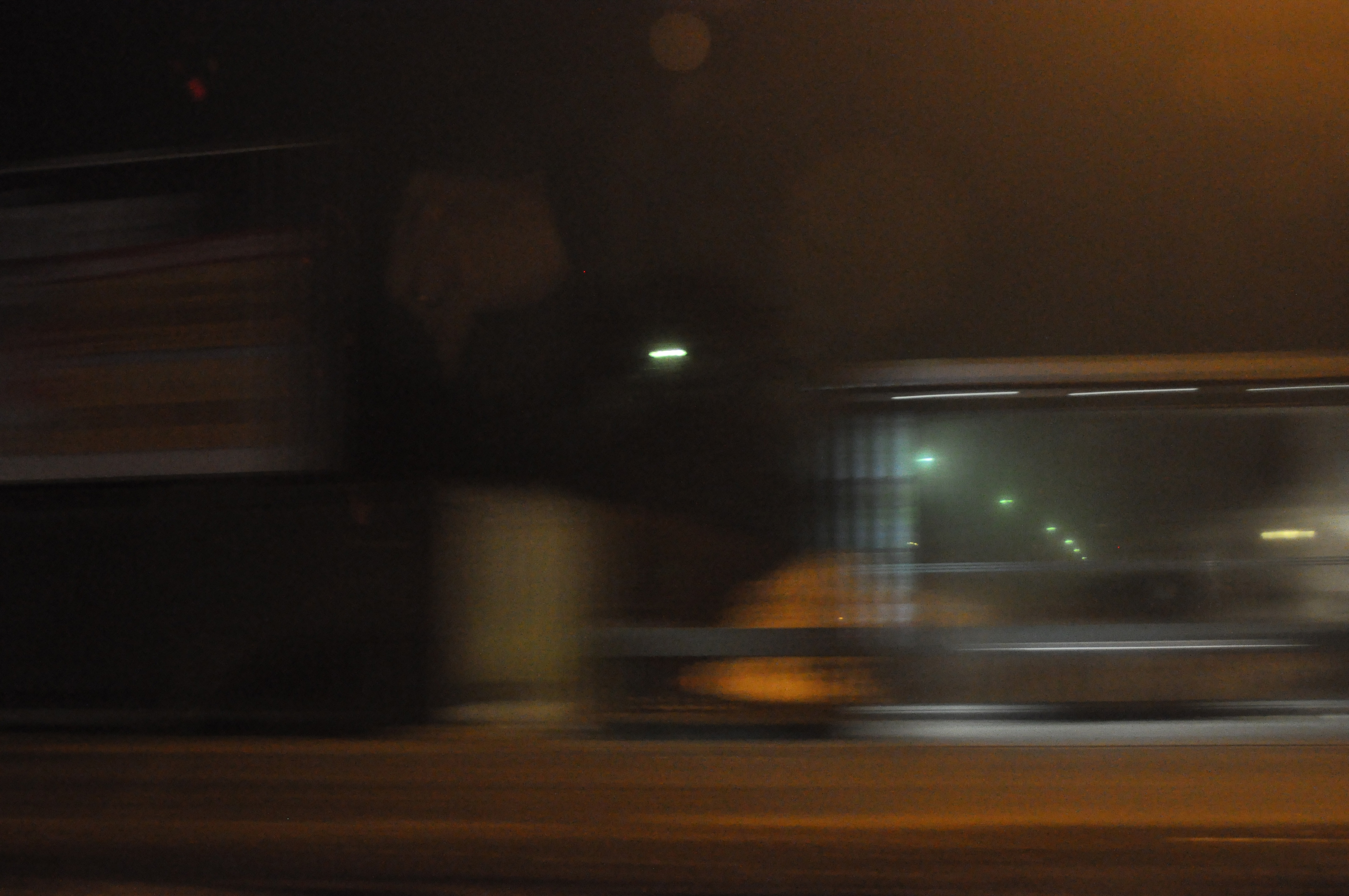 Tilfældige billeder fra en helt almindelig tur. Jeg skulle vist bare en tur i teatret. Frem og tilbage. En køretur midt i vinterens mulm og mørke. Kameraet suger langsomt til sig, balancerer på kanten af tilstrækkeligt lys. Farten trækker lysprikker i langdrag. Inde i mørket gemmer der sig et væld af historier. Verden bliver anderledes, når den næsten ikke kan ses. Små prikker af lys fylder og trækker opmærksomheden til sig. Neonlys strækker sig i abstrakte flader ud i mørket. Kringelkroge bliver forunderlige, måske næsten skræmmende. Kalder på udforskning. Eller på flugt? Omgivelsernes mørke og lyse tråde trækkes indad. Og jeg ender et helt andet sted ….